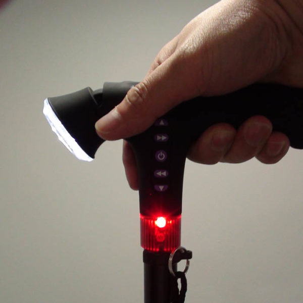 • Emergency buzzer, flashlight and LED lights – allows the user to be clearly seen, as well as allow them to see better in the dark and increase safety for them at night. Audio and visual alarms are included in the walking stick, this allows them to call for help quickly in case of an emergency.